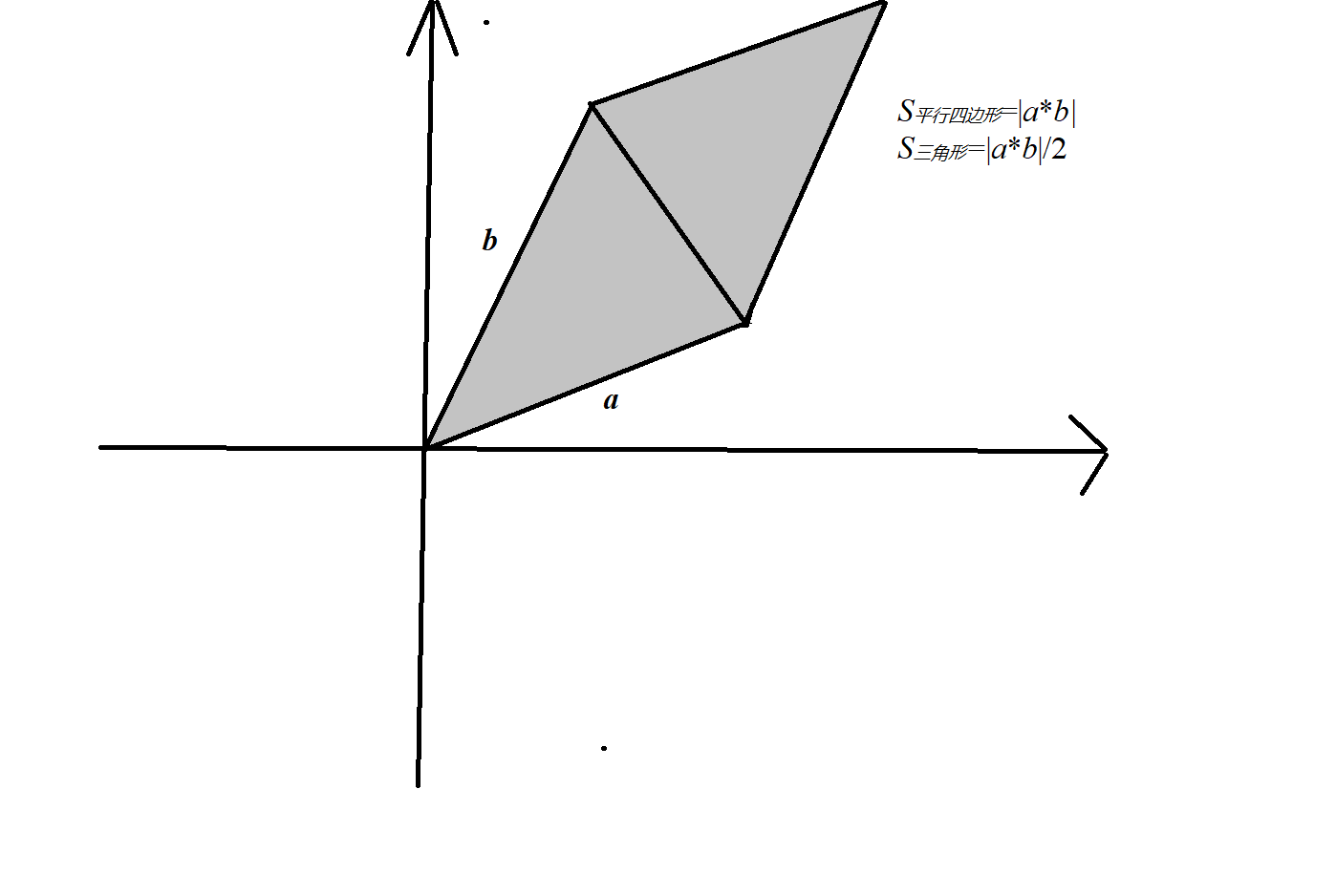其中函数算的是两个向量所夹的三角形的面积,直接叉积后面取绝对值即可。